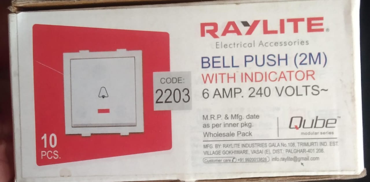 The Raylite Bell Push Switch (2M) is designed for convenient doorbell activation with a sleek and durable modular design. Perfect for residential and commercial applications, it integrates seamlessly with Raylite modular plates and switch systems.