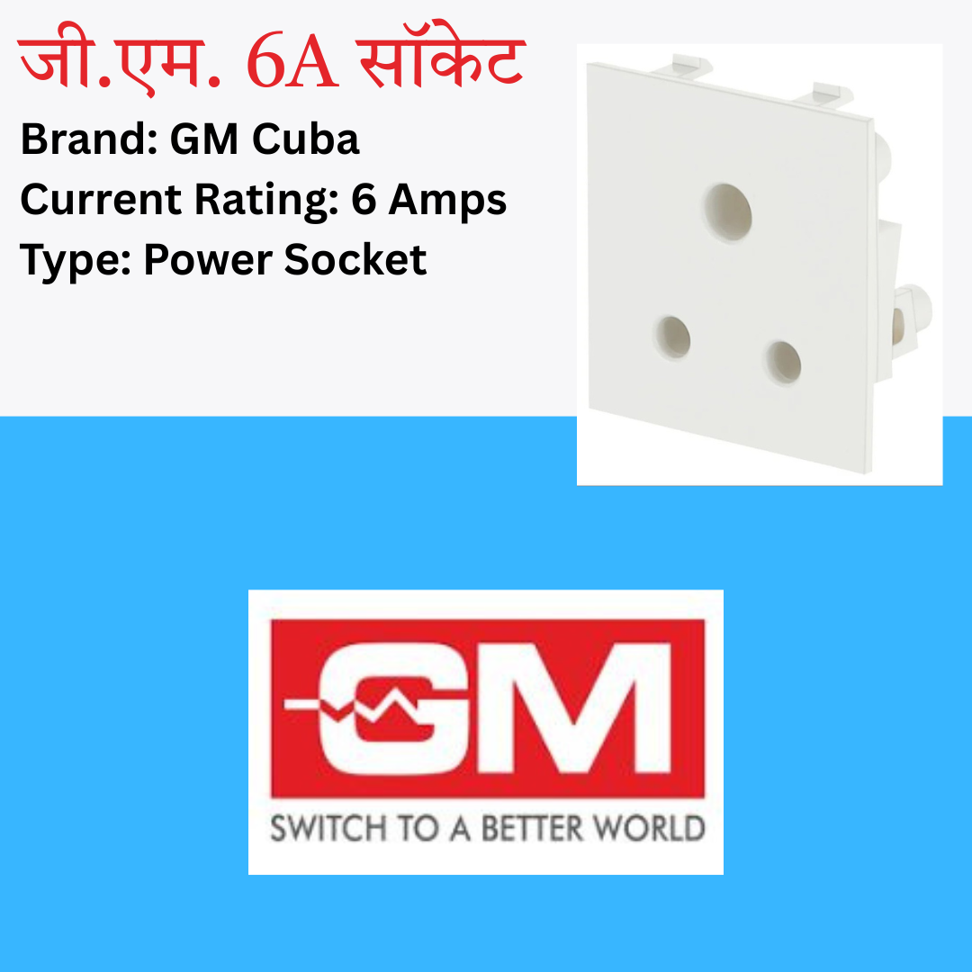 The GM Cuba 6A Modular 3 Pin Socket is a high-quality electrical socket