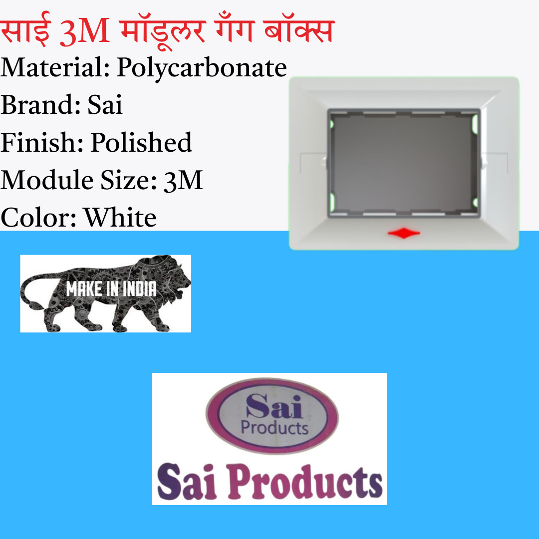 The Sai Silver 3M Gang Box is built for reliable and secure housing of three modular switches or sockets. Made from premium PVC/ABS plastic, it provides safety, durability, and a clean finish for both residential and commercial electrical setups.