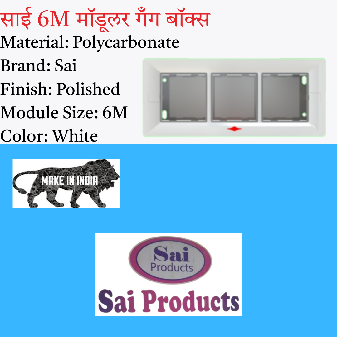 The Sai Silver 6M Gang Box provides strong, durable housing for up to six modular switches or sockets. Crafted from PVC/ABS thermoplastic, it ensures insulation, durability, and a neat wall finish.