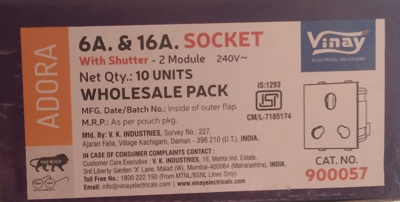 Order your Vinay Adora 16A Socket today for safe, reliable power connections!
